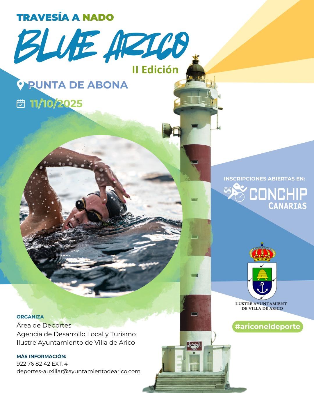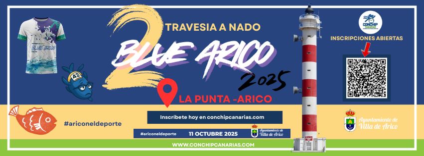 La costa del municipio de Arico acogerá este sábado 11 de octubre una de las citas más esperadas del calendario deportivo del sur de Tenerife. Se trata de la XXIII edición de la Travesía a Nado Blue Arico, una prueba que une simbólicamente dos de los núcleos costeros más emblemáticos del municipio: El Porís de Abona y La Punta de Abona, a través de 1.350 metros de natación en aguas abiertas.