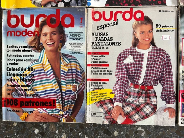 En casa de mis tíos en Las Palmas, tenían un par de tambores de aquellos, y tanto mi tía, como mi madre, los habían empapelado, forrado, recubiertos por fuera, con hojas de revistas de la época: Garbo, Blanco y Negro, Semana… Las “intocables” eran las Burda, unas que eran de moda, de corte y confección, que traían una separata con los patrones para realizar muchos de los modelos que se mostraban en el interior. Se calcaban estos patrones con papel transparente blanco y luego se copiaban poniéndolos encima de la tela, pintando con una tiza especial “de sastrería”. Lo comprábamos en el estanco… – Doña Lala, mi madre que me dé un duro de “papel de patrones”- Toma, y pregúntale a tu madre si tiene el Burda de Abril, y me lo presta. Y para casa, con una pastilla de plátano en la boca, que te había convidado doña Lala.