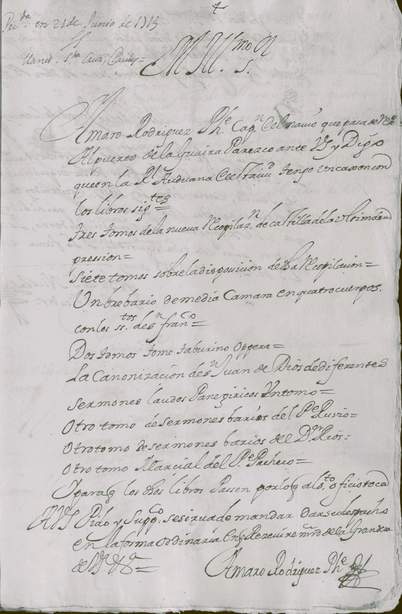 Ese mismo año, en Cádiz, Amaro Pargo se vio obligado a presentar ante la Inquisición una relación detallada de los libros que llevaba consigo. Se trataba de una relación formal, destinada a ser examinada y aprobada por el Santo Oficio como requisito previo a su aceptación y circulación a bordo del nuevo barco que había adquirido Amaro en el sur de España.